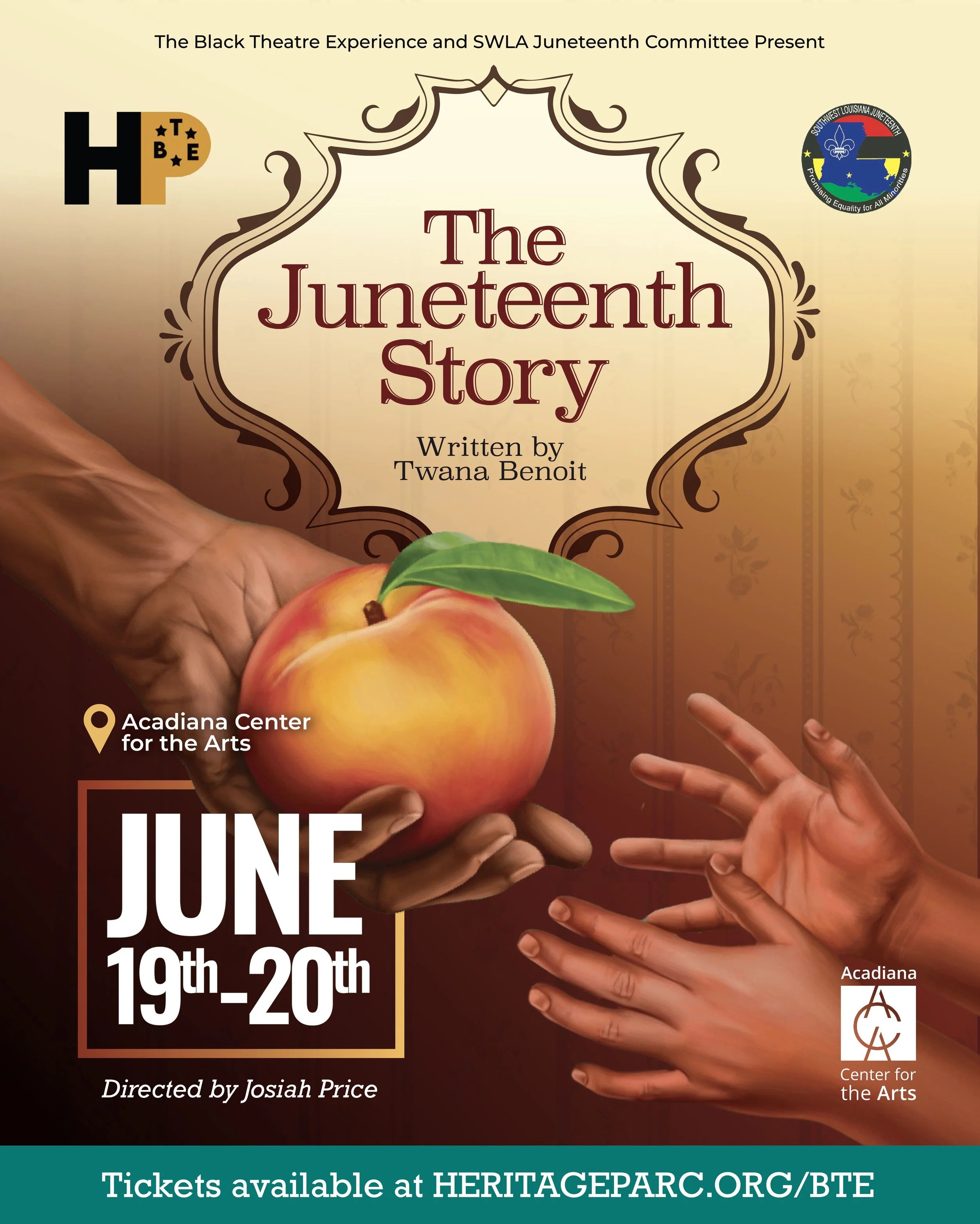 The Juneteenth Story is a cornerstone of Lafayette’s Juneteenth celebration. Presented by Black Theatre Experience (BTE) and SWLA Juneteenth Committee, this show is an original, community-rooted theatrical event that commemorates emancipation through story, music, movement, and intergenerational dialogue. Written by local playwright Twana Benoit and directed by Josiah Price, the production invites audiences into a culturally grounded, accessible performance that honors the past while speaking directly to the present.